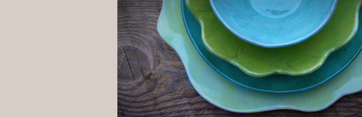 Unique serving pieces, in simple, organic shapes and drenched in rich colors, are made and painted entirely by hand in Rebecca Wood’s Athens, Georgia, studio.